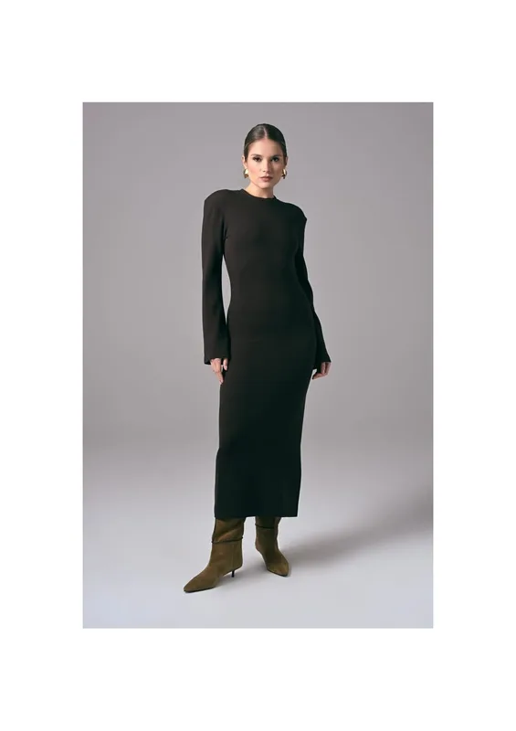 Brązowa sukienka damska Power Line o taliowanym kroju. Elegancja, struktura i nowoczesny power dressing do codziennej pracy. Sukienka Power Line to elegancka sukienka damska midi do pracy zaprojektowana w duchu nowoczesnego power dressingu. Łączy wyrazistą formę z komfortem noszenia, dzięki czemu sprawdza się w codziennym rytmie – w pracy, na spotkaniach i poza nimi. To model stworzony dla kobiet, które chcą wyglądać spójnie i pewnie bez nadmiaru stylizacji. DLACZEGO DZIAŁA Taliowany krój Delikatnie podkreśla talię i biodra, porządkując sylwetkę bez efektu opięcia. Poduszki na ramionach Wyraźna linia barków nadaje sylwetce siłę i równowagę, bez teatralnego przerysowania. Rozszerzane, długie rękawy Nowoczesny detal, który przełamuje prostą formę i dodaje sukience charakteru. Boczny rozporek Zapewnia swobodę ruchu i lekkość w długiej formie midi. MATERIAŁ Sukienka została uszyta z mięsistej dzianiny wiskozowej o wyraźnym splocie. Materiał: – nie prześwituje – jest stabilny i grubszy – dobrze trzyma formę – maskuje drobne mankamenty sylwetki Skład: wiskoza 70% poliamid 25% elastan 5 % ROZMIAR I DOPASOWANIE Sukienka ma fason regular, zaprojektowany tak, aby dobrze układać się na sylwetkach w zakresie rozmiarów S–L. S – polecany dla osób noszących XS/S M – polecany dla osób noszących M L – polecany dla osób noszących L Model wkładany przez głowę. WYMIARY: Wymiary mierzone na płasko Odpowiednio dla rozmiarów: S | M | L Szerokość ramion: 43 cm | 45 cm | 47 cm Biust: 40 cm | 41 cm | 43 cm Długość: 126 cm | 127 cm | 129 cm Długość rękawa: 61 cm | 62 cm | 63 cm Wysokość rozporka: 45 cm | 46 cm | 47 cm Modelka ma 173 cm i nosi rozmiar S . SZCZEGÓŁY TECHNICZNE – Długość: midi – Krój: taliowany – Dekolt: wysoki, okrągły – Rękawy: długie, rozszerzane ku dołowi – Ramiona: wzmocnione poduszkami – Rozporek: boczny – Materiał: dzianina wiskozowa – Produkcja: Polska STYLIZACJA Noś ją: – z botkami lub kozakami – z minimalistyczną biżuterią – solo lub pod płaszcz To sukienka, która porządkuje stylizację i nie wymaga okazji. NAJCZĘŚCIEJ ZADAWANE PYTANIA Czy sukienka sprawdzi się w codziennej pracy? Tak. Została zaprojektowana jako element codziennej elegancji – komfortowa, stabilna i odpowiednia do regularnego noszenia. Czy dopasowany krój nie podkreśla zbyt mocno sylwetki? Nie. Mięsista dzianina i przemyślana konstrukcja porządkują sylwetkę i maskują drobne mankamenty. Czy materiał jest odpowiedni na chłodniejsze dni? Tak. Dzianina jest grubsza, kryjąca i dobrze sprawdza się w niższych temperaturach.