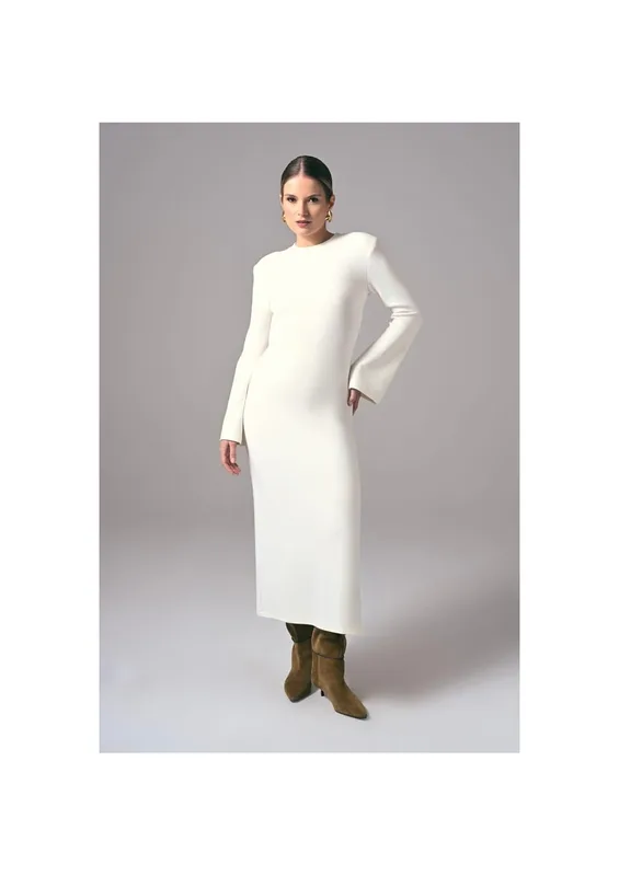 Sukienka Power Line Ecru – elegancka sukienka damska midi do pracy
