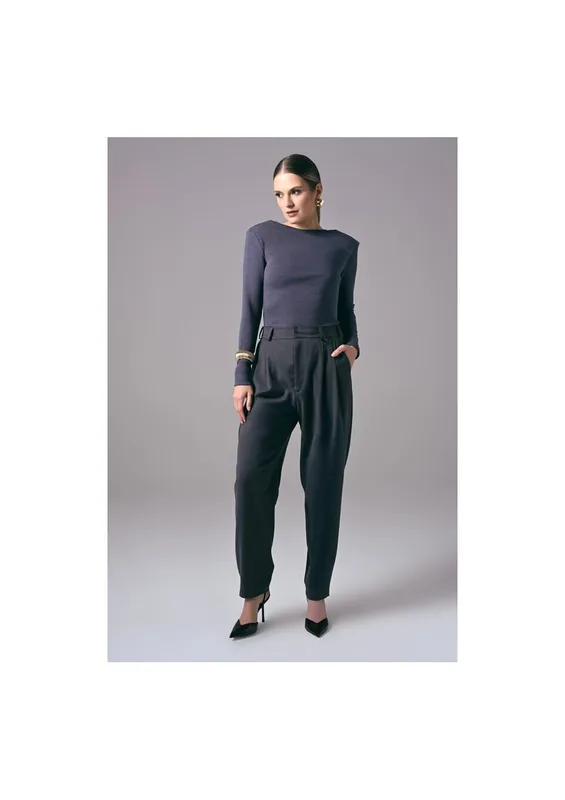 Eleganckie spodnie damskie Power Barrel o kroju barrel. Komfortowy pas, nowoczesna forma i power dressing do codziennej pracy. Spodnie Power Barrel to eleganckie spodnie damskie do pracy zaprojektowane w duchu nowoczesnego power dressingu. Łączą wyraźną formę z komfortem noszenia, dzięki czemu sprawdzają się zarówno w pracy, jak i w codziennych sytuacjach. To model stworzony dla kobiet, które chcą struktury, ale nie chcą walczyć z ubraniem w ciągu dnia. DLACZEGO DZIAŁA Krój barrel Lekko zaokrąglona linia nogawki buduje nowoczesną sylwetkę i nie opina nóg, zachowując elegancki charakter. Elastyczny pas z tyłu Ukryta guma ułatwia dopasowanie do sylwetki i eliminuje problem odstającego pasa, bez zaburzania estetyki. Zaszewki i konstrukcja Dwie zaszewki z przodu oraz dodatkowa zaszewka przy dole nogawki utrzymują formę spodni przez cały dzień. Funkcjonalne detale Kieszenie boczne i szlufki na pasek umożliwiają różne sposoby stylizacji – od formalnych po bardziej codzienne. MATERIAŁ Skład: wiskoza 74%, poliester 23%, elastan 3% Tkanina dobrze się układa, nie wypycha się na kolanach, nie gniecie się nadmiernie, zapewnia komfort przez wiele godzin. Została dobrana pod realne, codzienne użytkowanie. ROZMIAR I DOPASOWANIE Spodnie mają fason regular w stronę lekkiego oversize, zaprojektowany na zakres rozmiarów S–L. S – polecany dla osób noszących XS/S M – polecany dla osób noszących S/M L – polecany dla osób noszących M/L Jeśli wahasz się między dwoma rozmiarami — wybierz mniejszy. WYMIARY: Wymiary mierzone na płasko Odpowiednio dla rozmiarów: S | M | L Długość całkowita: 105 cm | 106 cm | 107 cm Szerokość w pasie: 37 cm | 39 cm | 41 cm Szerokość w biodrach: 49 cm | 51 cm | 53 cm Szerokość u dołu nogawki: 18 cm | 19 cm |20 cm Szerokość w udzie: 33 cm | 34 cm | 35 cm Długość stanu: 35 cm | 36 cm | 37 cm Modelka ma 173 cm i nosi rozmiar S. SZCZEGÓŁY TECHNICZNE - Fason: regular w stronę lekkiego oversize - Krój: barrel - Pas: elastyczny, z tyłu guma dla lepszego dopasowania - Kieszenie: boczne - Szlufki: tak - Skład: wiskoza 74%, poliester 23%, elastan 3% - Produkcja: Polska STYLIZACJA Noś je z koszulą, dopasowaną górą, marynarką lub prostym topem. To spodnie, które porządkują stylizację bez wysiłku. NAJCZĘŚCIEJ ZADAWANE PYTANIA Czy krój barrel sprawdzi się w pracy? Tak. To elegancka forma z nowoczesną linią, zaprojektowana z myślą o codziennej pracy. Czy elastyczny pas z tyłu jest widoczny? Nie. Guma została ukryta w konstrukcji pasa i nie zaburza estetyki spodni. Czy materiał będzie się wypychał na kolanach? Nie. Dodatek elastanu oraz odpowiednia gramatura tkaniny zapobiegają wypychaniu się materiału.