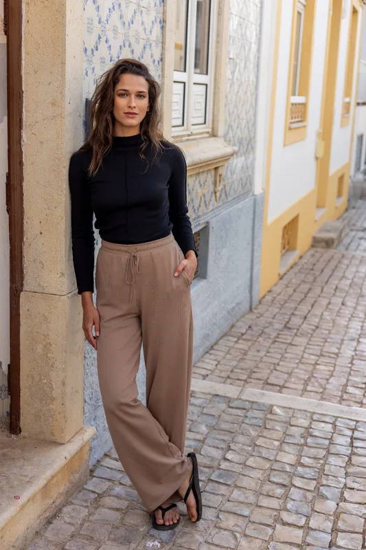 Spodnie Florence sprawią, że poczujesz się stylowo i wygodnie. Luźny krój pozwoli Ci poczuć się komfortowo. Model ten posiada wygodne kieszenie. Możesz je połączyć z kardiganem z tej samej serii. Ten komplet będzie stanowił modny element Twojej domowej garderoby. Modelka, którą widzisz na zdjęciu ma na sobie rozmiar S/M.
