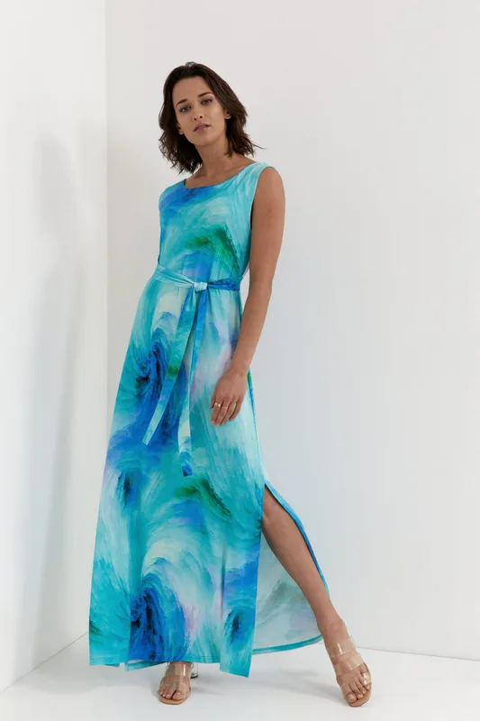 Sukienka LISBON to propozycja dla kobiet, które cenią sobie styl i wygodę. Wykonana z miękkiej wiskozy, ta sukienka zapewnia pełen komfort noszenia i świetnie układa się na sylwetce. Charakterystyczny niebieski wzór dodaje sukience LISBON niepowtarzalnego charakteru i sprawia, że wyróżnia się ona spośród innych propozycji. Klasyczny krój z dekoltem w łódkę sprawia, że sukienka ta jest idealnym wyborem na wiele różnych okazji - od pracy, poprzez spotkania towarzyskie, po romantyczną kolację. Sukienka LISBON jest łatwa w utrzymaniu. Kolorowy wzór nie blaknie i pozostaje intensywny nawet po wielu praniach. Sukienka LISBON to doskonała propozycja dla kobiet, które cenią sobie styl i wygodę. Wykonana z miękkiej i przyjemnej w dotyku wiskozy, ta sukienka zapewni Ci pełen komfort noszenia na wiele różnych okazji. To doskonały wybór dla kobiet, które chcą wyglądać stylowo i wyróżniać się z tłumu. Modelka, którą widzisz na zdjęciu ma 176 cm wzrostu i prezentuje rozmiar UNI.