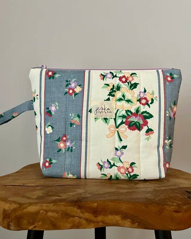 Uszyta w duchu upcyclingu, w małym studio w Poznaniu. Duża, pikowana kosmetyczka, idealna do codziennego użytkowania i na wyjazd. Zapakujesz do niej wszystkie swoje kosmetyki. Ma uchwyt, można ją powiesić. Jeden, unikatowy egzemplarz. W poprzednim życiu była: vintage zasłonką i pościelą. Materiał zewnętrzny i podszewka: 100% bawełna. Wymiary: +/- 28cmx20,5cmx8,5cm Prać ręcznie lub w pralce w max 30 stopniach. Suszyć z podszewką na zewnątrz.