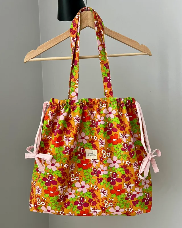 W poprzednim życiu była: kawałkiem surowego materiału (materiał zewnętrzny) i pościelą (podszewka). Podszewka i sznurki w kolorze różowym. Skład: materiał zewnętrzy: brak metki podszewka i sznurki: 100% bawełna usztywnienie: poliester metka: bawełna karabińczyk: metal. Wymiary: +/- 46cmx38cmx9cm, długość rączki +/- 61cm, szerokość rączki +/-2,5cm Prać ręcznie lub w pralce w max 30 stopniach, przy użyciu delikatnych środków piorących. Suszyć na płasko, z podszewką na zewnątrz. Nie suszyć w suszarce. Prasować lub parować przez bawełnianą ścierkę. Produkt zawiera małe elementy (karabińczyk), występuje ryzyko udławienia. Producent: Jesko Anna Jęśko