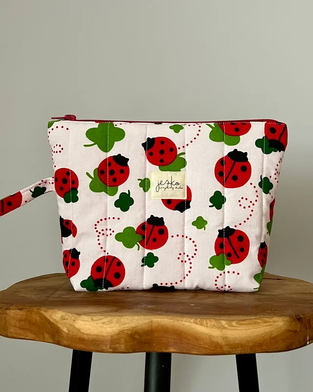 W poprzednim życiu była: pościelą (materiał zewnętrzny i podszewka). Zamek i podszewka w kolorze czerwonym. Skład: materiał zewnętrzy: 100% bawełna podszewka 100% bawełna wypełnienie: poliester metka: bawełna zamek: metal, poliester. Wymiary: +/- 27cmx20cmx8cm Prać ręcznie lub w pralce w max 30 stopniach, przy użyciu delikatnych środków piorących. Suszyć na płasko, z podszewką na zewnątrz. Nie suszyć w suszarce. Prasować lub parować omijając metkę. Produkt zawiera małe elementy (suwak), występuje ryzyko udławienia. Producent: Jesko Anna Jęśko