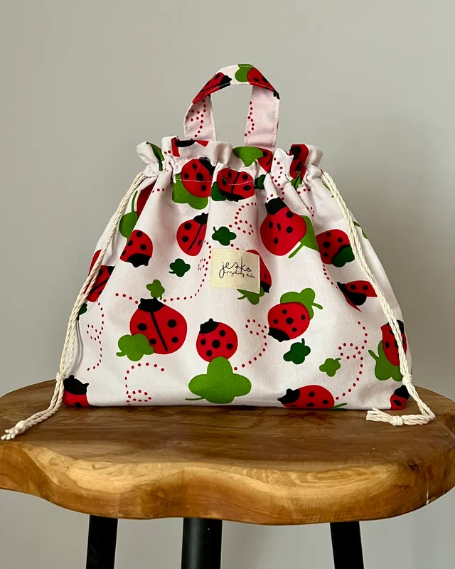 W poprzednim życiu była: pościelą (materiał zewnętrzny i podszewka). Podszewka w kolorze czerwonym, sznureczki w kolorze beżowym. Skład: materiał zewnętrzy: 100% bawełna podszewka 100% bawełna usztywnienie: poliester metka: bawełna sznurki: bawełna Wymiary: +/- 33cmx23cmx8,5cm Prać ręcznie lub w pralce w max 30 stopniach, przy użyciu delikatnych środków piorących. Suszyć na płasko, z podszewką na zewnątrz. Nie suszyć w suszarce. Prasować lub parować przez bawełnianą ścierkę. Producent: Jesko Anna Jęśko