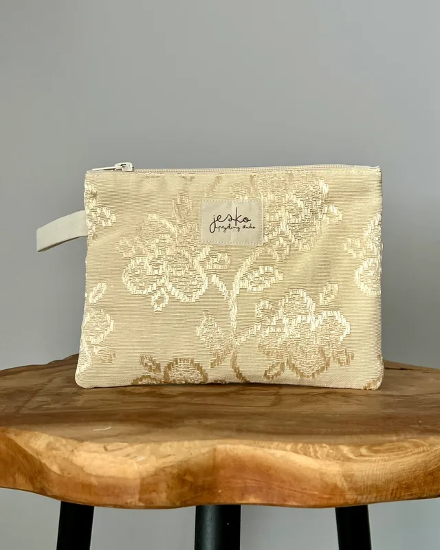 W poprzednim życiu była: zasłoną (materiał zewnętrzny) i pościelą (podszewka). Skład: materiał zewnętrzy: brak metki ze składem podszewka 100% poliester usztywnienie: poliester metka: bawełna zamek: metal, poliester. Wymiary: +/- 19cmx15cm Prać ręcznie lub w pralce w max 30 stopniach, przy użyciu delikatnych środków piorących. Suszyć na płasko, z podszewką na zewnątrz. Nie suszyć w suszarce. Prasować lub parować omijając metkę. Produkt zawiera małe elementy (suwak), występuje ryzyko udławienia. Producent: Jesko Anna Jęśko