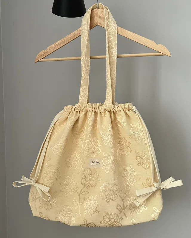 W poprzednim życiu była: zasłoną (materiał zewnętrzny) i pościelą. Podszewka i sznurki w kolorze beżowym. Skład: materiał zewnętrzy: brak metki ze składem podszewka i sznurki: 100% poliester usztywnienie: poliester metka: bawełna karabińczyk: metal. Wymiary: +/- 46cmx38cmx9cm, długość rączki +/- 61cm, szerokość rączki +/-2,5cm Prać ręcznie lub w pralce w max 30 stopniach, przy użyciu delikatnych środków piorących. Suszyć na płasko, z podszewką na zewnątrz. Nie suszyć w suszarce. Prasować lub parować przez bawełnianą ścierkę. Produkt zawiera małe elementy (karabińczyk), występuje ryzyko udławienia. Producent: Jesko Anna Jęśko