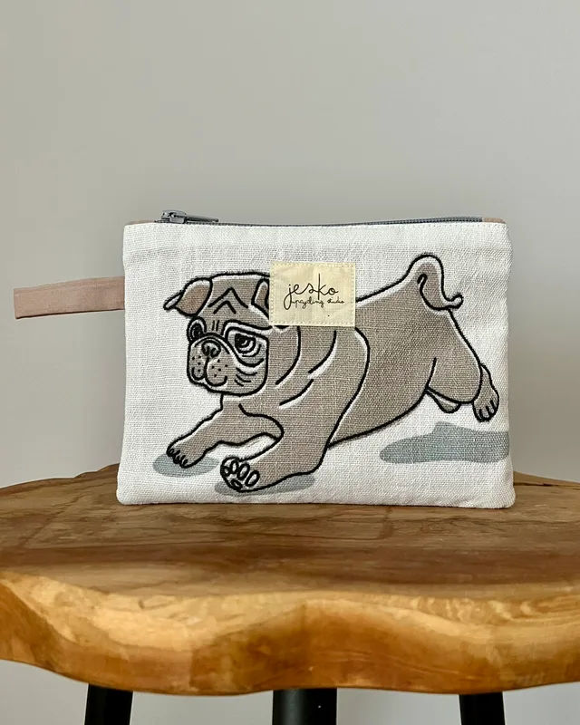 W poprzednim życiu była: zasłoną (materiał zewnętrzny) i pościelą (podszewka). Skład: materiał zewnętrzy: 100% bawełna podszewka 100% bawełna usztywnienie: poliester metka: bawełna zamek: metal, poliester. Wymiary: +/- 19cmx15cm Prać ręcznie lub w pralce w max 30 stopniach, przy użyciu delikatnych środków piorących. Suszyć na płasko, z podszewką na zewnątrz. Nie suszyć w suszarce. Prasować lub parować omijając metkę. Produkt zawiera małe elementy (suwak), występuje ryzyko udławienia. Producent: Jesko Anna Jęśko