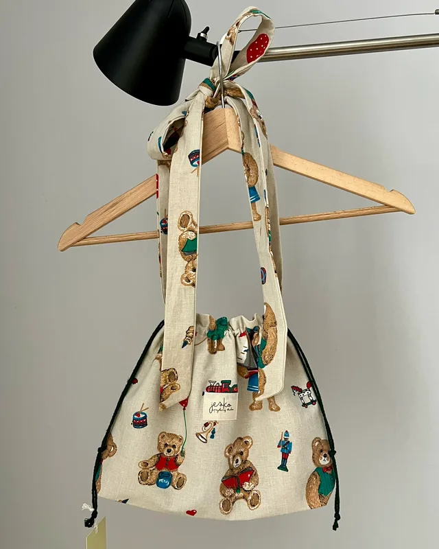 W poprzednim życiu była: zasłoną (materiał zewnętrzny) i pościelą (podszewka). Podszewka w kolorze mokka, sznureczki zielone. Skład: materiał zewnętrzy: 100% bawełna podszewka: 100% bawełna usztywnienie: poliester metka: bawełna sznureczki: bawełna. Wymiary: +/- 32cmx25cmx7cm, długość rączki +/-99cm Prać ręcznie lub w pralce w max 30 stopniach, przy użyciu delikatnych środków piorących. Suszyć na płasko, z podszewką na zewnątrz. Nie suszyć w suszarce. Prasować lub parować przez bawełnianą ścierkę. Producent: Jesko Anna Jęśko