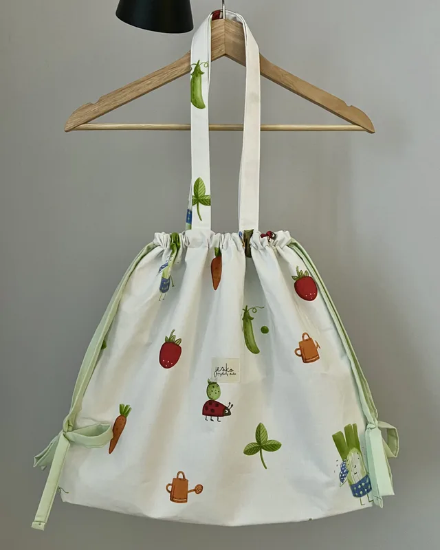 W poprzednim życiu była: kawałkiem materiału (materiał zewnętrzny) i pościelą (podszewka). Skład: materiał zewnętrzy: 100% bawełna podszewka i sznurki: 100% bawełna usztywnienie: poliester metka: bawełna karabińczyk: metal. Wymiary: +/- 46cmx38cmx9cm, długość rączki +/- 61cm, szerokość rączki +/-2,5cm Prać ręcznie lub w pralce w max 30 stopniach, przy użyciu delikatnych środków piorących. Suszyć na płasko, z podszewką na zewnątrz. Nie suszyć w suszarce. Prasować lub parować przez bawełnianą ścierkę. Produkt zawiera małe elementy (karabińczyk), występuje ryzyko udławienia. Producent: Jesko Anna Jęśko