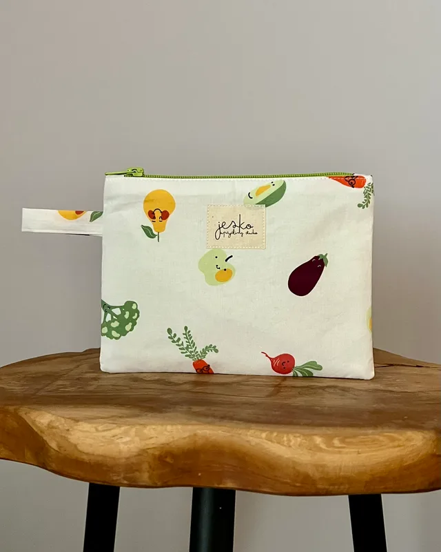 W poprzednim życiu była: pościelą (materiał zewnętrzny i podszewka) Skład: materiał zewnętrzy: 100% bawełna podszewka: 100% bawełna usztywnienie: poliester metka: bawełna zamek: metal, poliester. Wymiary: +/- 19cmx15cm Prać ręcznie lub w pralce w max 30 stopniach, przy użyciu delikatnych środków piorących. Suszyć na płasko, z podszewką na zewnątrz. Nie suszyć w suszarce. Prasować lub parować omijając metkę. Produkt zawiera małe elementy (suwak), występuje ryzyko udławienia. Producent: Jesko Anna Jęśko