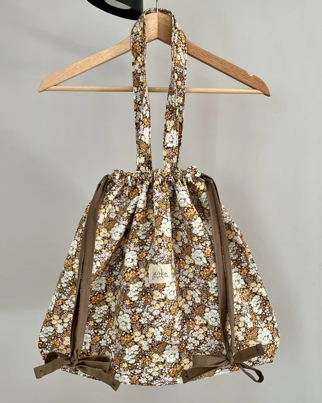 W poprzednim życiu była: pościelą (materiał zewnętrzny i podszewka). Skład: materiał zewnętrzy: 50% modal, 50% bawełna podszewka: 100% bawełna usztywnienie: poliester metka: bawełna karabińczyk: metal. Wymiary: +/- 46cmx38cmx9cm, długość rączki +/- 61cm, szerokość rączki +/-2,5cm Prać ręcznie lub w pralce w max 30 stopniach, przy użyciu delikatnych środków piorących. Suszyć na płasko, z podszewką na zewnątrz. Nie suszyć w suszarce. Prasować lub parować przez bawełnianą ścierkę. Produkt zawiera małe elementy (karabińczyk), występuje ryzyko udławienia. Producent: Jesko Anna Jęśko