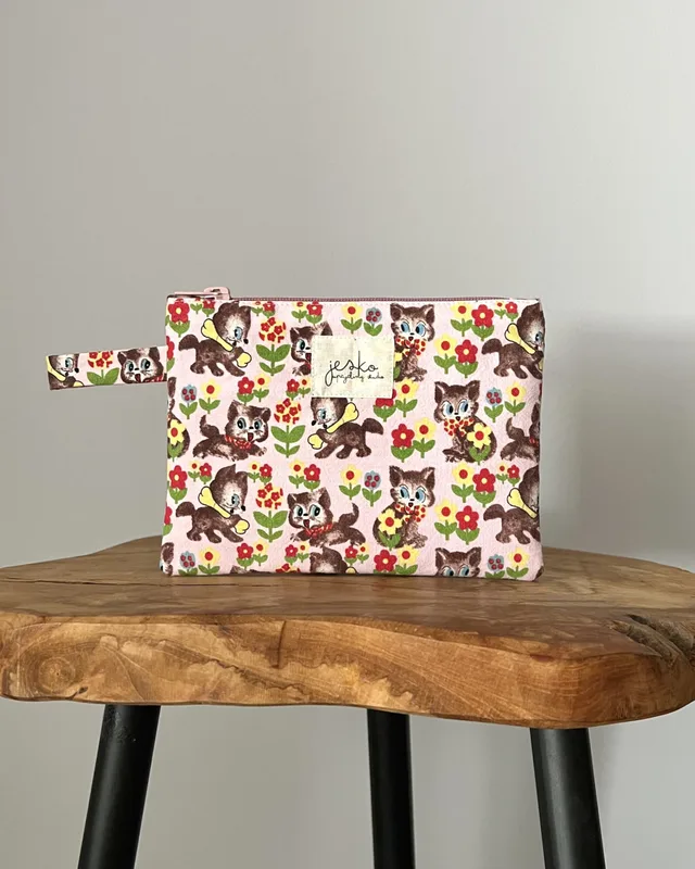 W poprzednim życiu była: pościelą dziecięcą (materiał zewnętrzny) i poszewką na poduszkę (podszewka). Skład: materiał zewnętrzy: 100% bawełna podszewka: 100% bawełna usztywnienie: poliester metka: bawełna zamek: metal, poliester. Wymiary: +/- 19cmx15cm Prać ręcznie lub w pralce w max 30 stopniach, przy użyciu delikatnych środków piorących. Suszyć na płasko, z podszewką na zewnątrz. Nie suszyć w suszarce. Prasować lub parować omijając metkę. Produkt zawiera małe elementy (suwak), występuje ryzyko udławienia. Producent: Jesko Anna Jęśko