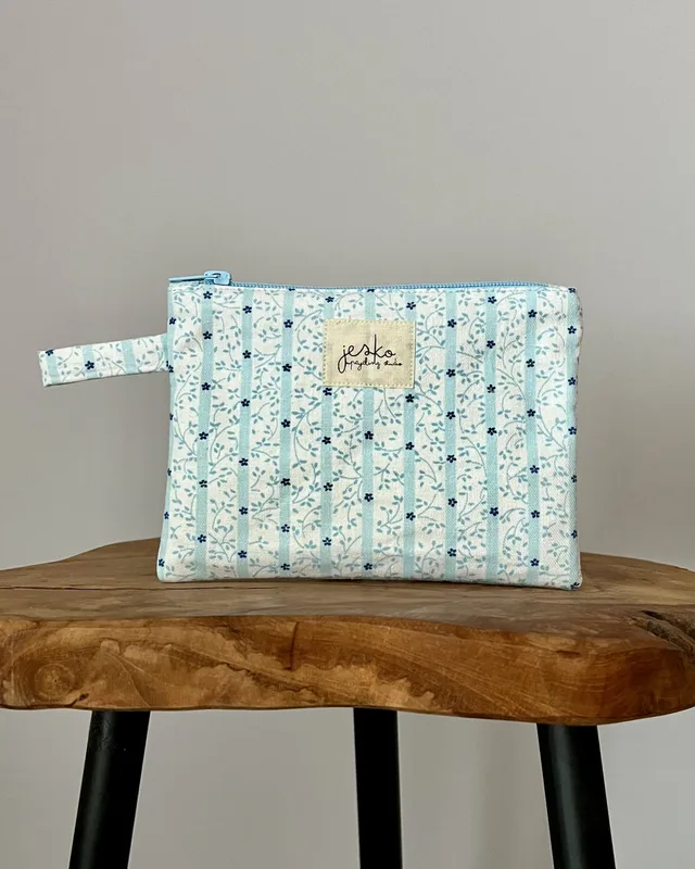 W poprzednim życiu była: kawałkiem materiału (materiał zewnętrzny) i pościelą (podszewka). Skład: materiał zewnętrzy: brak metki ze składem, na moje oko bawełna/mieszanka bawełny i poliestru podszewka: 100% bawełna usztywnienie: poliester metka: bawełna zamek: metal, poliester. Wymiary: +/- 19cmx15cm Prać ręcznie lub w pralce w max 30 stopniach, przy użyciu delikatnych środków piorących. Suszyć na płasko, z podszewką na zewnątrz. Nie suszyć w suszarce. Prasować lub parować omijając metkę. Produkt zawiera małe elementy (suwak), występuje ryzyko udławienia. Producent: Jesko Anna Jęśko