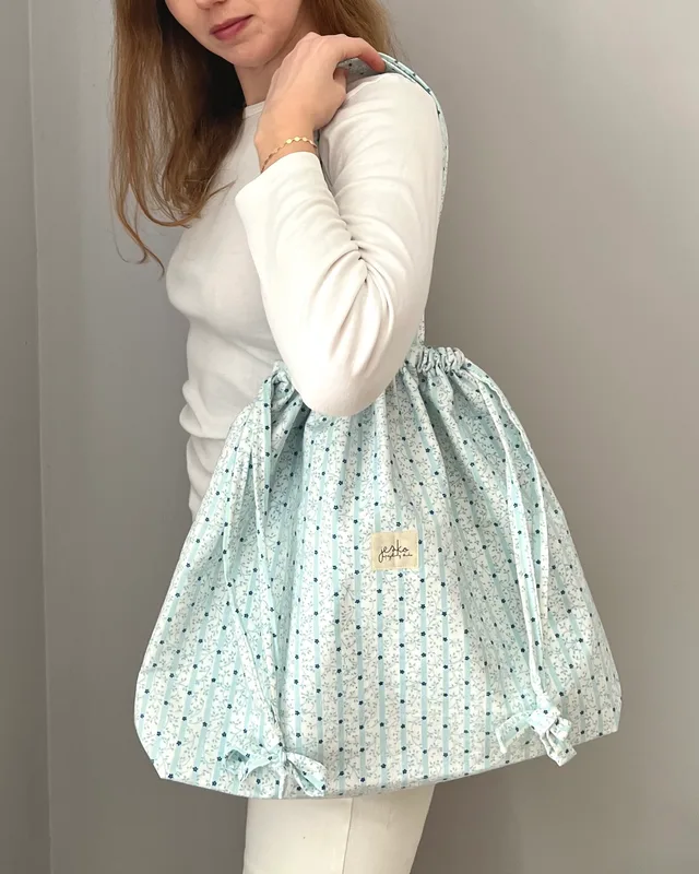 W poprzednim życiu była: kawałkiem materiału (materiał zewnętrzny) i pościelą (podszewka). Skład: materiał zewnętrzy: brak metki ze składem, na moje oko bawełna/mieszanka bawełna-poliester podszewka: 50% bawełna/50% poliester usztywnienie: poliester metka: bawełna karabińczyk: metal. Wymiary: +/- 46cmx38cmx9cm, długość rączki +/- 61cm, szerokość rączki +/-2,5cm Prać ręcznie lub w pralce w max 30 stopniach, przy użyciu delikatnych środków piorących. Suszyć na płasko, z podszewką na zewnątrz. Nie suszyć w suszarce. Prasować lub parować przez bawełnianą ścierkę. Produkt zawiera małe elementy (karabińczyk), występuje ryzyko udławienia. Producent: Jesko Anna Jęśko