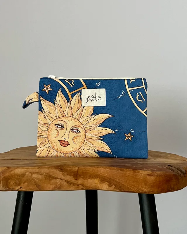 W poprzednim życiu była: pościelą (materiał zewnętrzny i podszewka). Skład: materiał zewnętrzy: 100% bawełna podszewka: 50% bawełna, 50% poliester usztywnienie: poliester metka: bawełna zamek: metal, poliester. Wymiary: +/- 19cmx15cm Prać ręcznie lub w pralce w max 30 stopniach, przy użyciu delikatnych środków piorących. Suszyć na płasko, z podszewką na zewnątrz. Nie suszyć w suszarce. Prasować lub parować omijając metkę. Produkt zawiera małe elementy (suwak), występuje ryzyko udławienia. Producent: Jesko Anna Jęśko