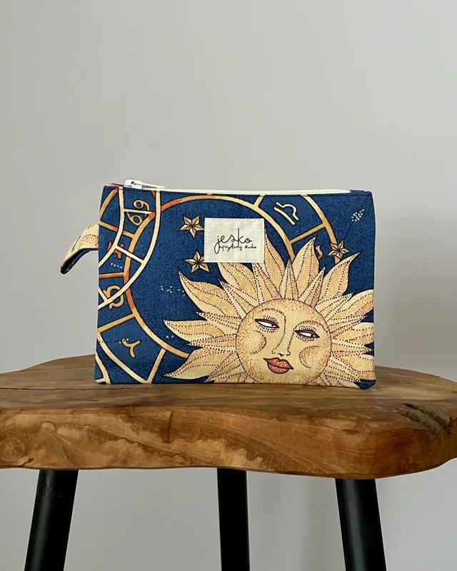 W poprzednim życiu była: pościelą (materiał zewnętrzny i podszewka). Skład: materiał zewnętrzy: 100% bawełna podszewka: 50% bawełna, 50% poliester usztywnienie: poliester metka: bawełna zamek: metal, poliester. Wymiary: +/- 19cmx15cm Prać ręcznie lub w pralce w max 30 stopniach, przy użyciu delikatnych środków piorących. Suszyć na płasko, z podszewką na zewnątrz. Nie suszyć w suszarce. Prasować lub parować omijając metkę. Produkt zawiera małe elementy (suwak), występuje ryzyko udławienia. Producent: Jesko Anna Jęśko