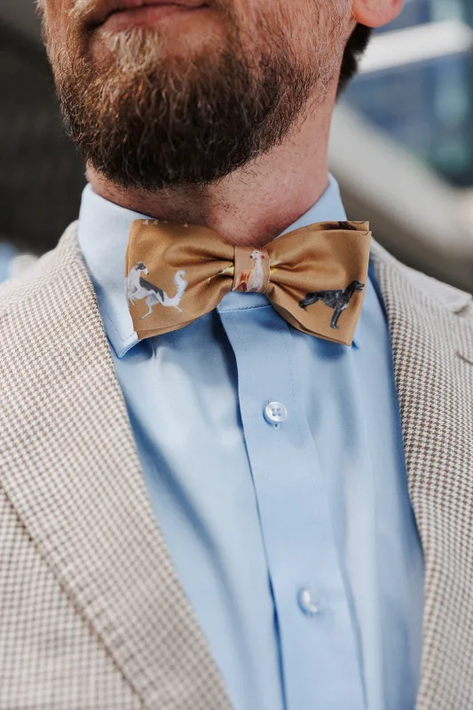 Opis Muszka męska w charty od LOANI to idealna propozycja dla osób ceniących klasyczną elegancję w niebanalnym wydaniu. Karmelowa muszka zachwyca lekkością, miękkością i pięknym wzorem przedstawiającym charty – ręcznie rysowane, a następnie przeniesione na tkaninę. Muszka została uszyta w Polsce i posiada regulowane zapięcie, dzięki czemu jest gotowa do założenia od razu po wyjęciu z pudełka. Dostępna w czterech wyrazistych kolorach: butelkowa zieleń, granat, błękit, karme. Doskonale komponuje się z poszetką z tej samej kolekcji. Każda muszka wykrajana jest ręcznie, z ogromną precyzją, by jak najlepiej wyeksponować sylwetki psów na materiale. Ze względu na niewielką powierzchnię muszki, możliwe jest umieszczenie jedynie trzech sylwetek chartów. Dlatego też rasy prezentowane są w zmiennej, indywidualnej kompozycji, co sprawia, że każdy egzemplarz ma swój unikalny charakter. Zdjęcia pokazują możliwą konfiguracje sylwetek psów, jednak ich wybór jest losowy. Jeśli zależy Ci na uwidocznieniu konkretnej rasy, napisz komentarz do zamówienia lub skontaktuj się z nami, jest szansa, że uda się przesłać Ci muszkę z rasą na której Ci zależy.