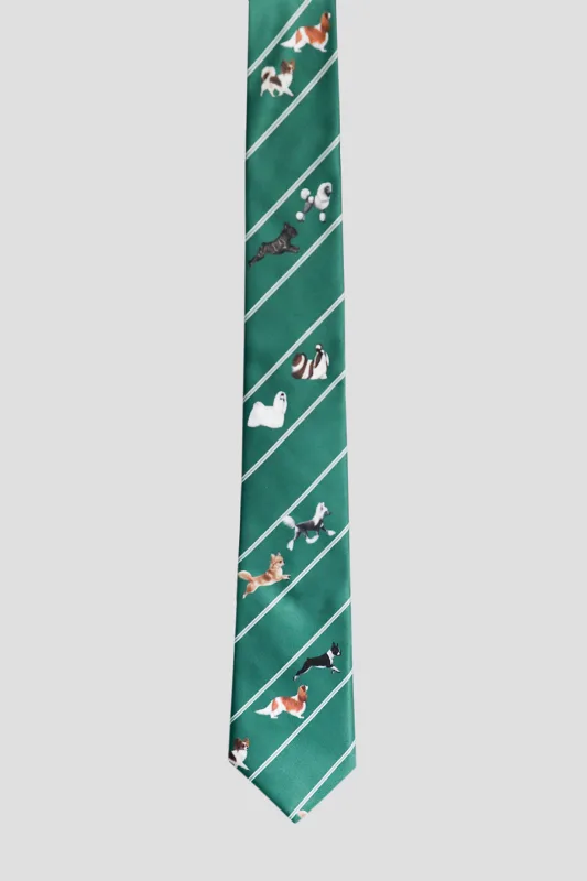 Opis Elegancki krawat w kolorze butelkowej zieleni, ze wzorem w Psy ozdobne i do towarzystwa. To wyjątkowe połączenie klasyki z autorskim wzornictwem. Zachwyca subtelnym połyskiem oraz przyjemnym w dotyku wykończeniem. Charakterystyczny wzór z małymi psami został ręcznie narysowany i przeniesiony na tkaninę. Krawat został starannie uszyty w Polsce z dbałością o każdy detal. Idealnie sprawdzi się zarówno jako prezent dla miłośnika psów i elegancji, jak i stylowy dodatek na ślub, przyjęcie czy spotkanie biznesowe. Dostępny w pięciu kolorach: butelkowa zieleń, granat, błękit, karmel i róż! Szerokość krawata w najszerszym punkcie: 7,5 cm. Na krawacie znajdziesz takie rasy jak: pudel, cavalier, buldożek francuski, boston terrier, maltańczyk, chihuahua, shih tzu, papillon i chiński grzywacz .