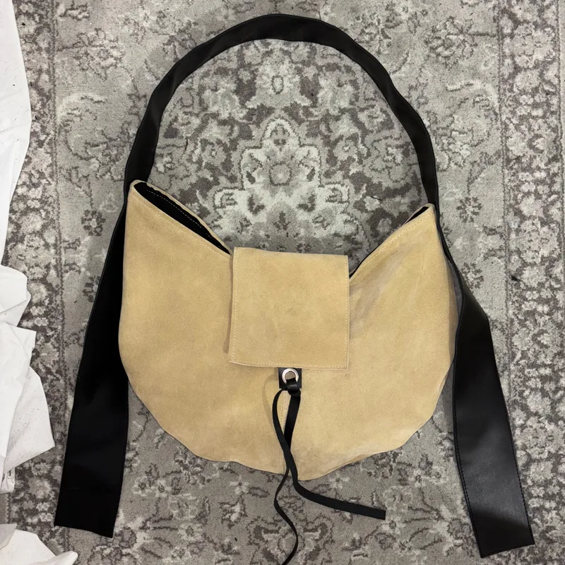 Ta beżowa torba hobo została uszyta z dbałością o każdy detal, z portugalskiej skóry naturalnej. W środku znajdziesz bawełnianą podszewkę i kieszonkę na zamek, całość zamykana na zatrzask.