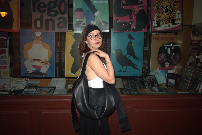 Czarna torba hobo, szyta z dbałością o każdy detal. Włoska skóra naturalna, bawełniana podszewka. W środku kieszonka na zamek, całość zapinana na zatrzask.