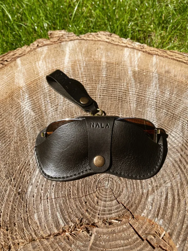 Pokrowiec na okulary, kolekcja „Katowice", kolor czarny, skóra naturalna Stylowy pokrowiec na okulary w ponadczasowym, klasycznym czarnym kolorze skóry. To praktyczne i proste etui ma nietuzinkowy kształt. Swoją oryginalmośc zawszięcza półotwartej formie oraz miękkiej lini wykroju, podkreślonej wyrazistym szwem. Zawieś go na szlufce spodni, pasku albo dopnij do torebki, wykorzystując brylczek NALA z karabińczykiem, który możesz kupić tutaj -> klik Opis produktu: Wymiary zewnętrzne: długość: 16cm, wysokość 8cm System mocowania: tylna szlufka Materiał: skóra naturalna garbowana roślinnie Grubość skóry: 1,8 mm Kolor: piaskowy Okucia: napa kolor stare złoto Szew: lniana nić, kolor piaskowy Pokrowiec sprzedawany jest bez zawieszki, ten produkt znajdziesz tutaj -> KLIK Pielęgnacja i czyszczenie: Wszelkie informacje znajdziesz w zakładce "pielęgnacja i czyszczenie" -> KLIK