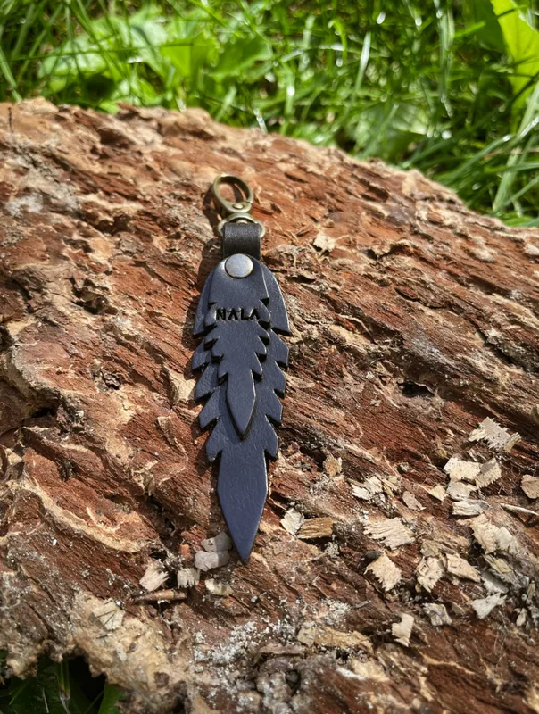 Breloczek „Listki", kolekcja "Katowice", kolor czarny, skóra naturalna Najmniejsze dodatki nadają niepowtarzalnego charakteru każdej stylizacji. Ciesz się nimi i zaskakuj zmieniając swoje ulubione produkty, poprzez dopinanie akcesoriów NALA Opis produktu: Wymiary: długość 7 cm szerokość 2,7 cm Mocowanie: karabińczyk Materiał: skóra naturalna garbowana roślinnie Grubość skóry: 1,8 mm Kolor : kasztanowy brąz Szew: brak Okucia: napy, kolor stare złoto Pielęgnacja i czyszczenie: Wszelkie informacje znajdziesz w zakładce "pielęgnacja i czyszczenie" -> KLIK