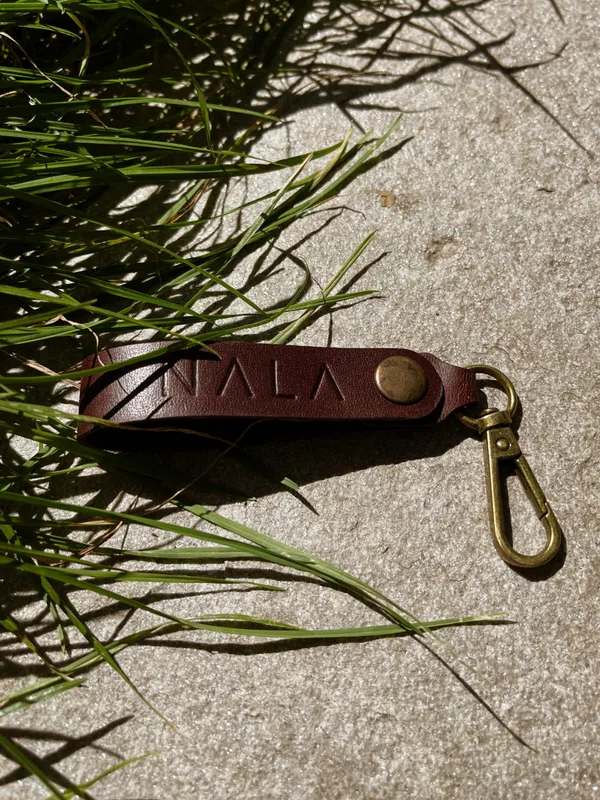 Breloczek / zawieszka do produktów NALA, kolekcja " Nikiszowiec", kolor wiśniowy, skóra naturalna Uniwersalny brelczek NALA, jest podstawowym dodatkiem łączącym drobne akcesoria NALA z innymi prokuktami. Dzięki niemu możesz dopinać do swojej torebki lub nerki mniejsze elementy i ozdoby NALA, takie jak pokrowiec lub klips na okulary czy etui na klucze. Ten, piękny w swojej prostocie produkt ma jeszcze wiele zatosowań do odkrycia, świetnie sprawdzi się jako uchwyt na apaszkę, chustę plażową lub rękawiczki. Opis produktu: Wymiary: długośż: 10cm (z karabińczykiem 14cm) Mocowanie: karabińczyk Materiał: skóra naturalna garbowana roślinnie Grubość skóry: 1,8 mm Kolor : wiśniowy Szew: brak Okucia: nity, kolor stare złoto Pielęgnacja i czyszczenie: Wszelkie informacje znajdziesz w zakładce "pielęgnacja i czyszczenie" KLIK