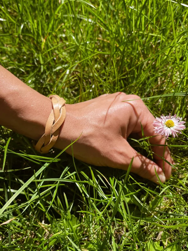 Bransoletka „Pleciona" Skórzana biżuteria jest unikatowym dodatkiem do każdej wyszukanej stylizacji. Ta delikatna bransoletka przepięknie prezentuje się na ręce, połączona z innymi produktami NALA, tworzy nietuzinkowe zestawy. Opis produktu: Wymiary rozpiętej bransoletki: 21 cm x 2 cm Zapięcie: Trzystopniową regulacja zapinana na knopik Materiał: skóra naturalna garbowana roślinnie Grubość skóry: 1,8 mm Kolor : kasztanowy brąz Szew: brak Okucia: knopik, kolor stare złoto Pielęgnacja i czyszczenie: Wszelkie informacje znajdziesz w zakładce "pielęgnacja i czyszczenie" -> KLIK