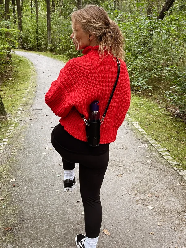 Pokrowiec na bidon, kolekcja „Szczyrk", kolor czarny - srebro, skóra naturalna Niezwykle praktyczny, wyjątkowo designerski pokrowiec, dzięki któremu Twój ulubiony napój będziesz mieć zawsze w zasięgu ręki. Zmieścisz do niego bidon, butelkę, puszkę o standardowych wymiarach popularnych, półlitrowych napojów. Ten wspaniały gadżet możesz nosić na ramieniu lub zapięty w pasie. Zachwycaj swoją stylizacją w każdej sytuacji, w drodze do pracy, podczas weekendowych spacerów, czy nocnych szaleństw na festiwalu. Opis produktu: Zestaw zawiera: pokrowiec na bidon, długi modułowy, regulowany pasek na ramię i biodra Wymiary: wysokość 14,5 cm średnica wewnętrzna 6,63 cm (mieści standardową puszkę, butelkę, bidon typu „Dafi" o pojemności 0,5 litra) Pasek modułowy: maksymalna długość około 120 cm minimalna długość około 60 cm szczegółowy opis paska oraz sposoby noszenia i zapinania znajdziesz klikając w link -> KLIK System mocowania: szlufki na pasek, półkola do wpięcia karabińczyków, oczka na wpięcie boczne Materiał: skóra naturalna garbowana roślinnie Grubość skóry: 1,8 mm Kolor : czarny Szew: brak Okucia: napy, nity, oczka kolor srebro Pielęgnacja i czyszczenie: Wszelkie informacje znajdziesz w zakładce "pielęgnacja i czyszczenie" -> KLIK