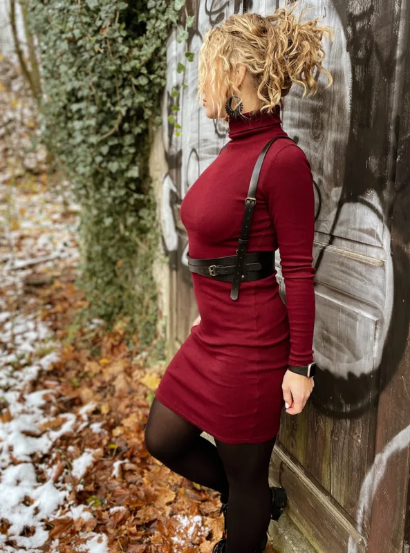 Szelki typu Hernes, kolekcja "Katowice", skóra naturalna, kolor czarny, okucia złote Nasze damskie szelki typu Hernes to połączenie elegancji, kobiecości i zmysłowego wyrafinowania. Regulowana szerokość w pasie zapewnia idealne dopasowanie w talii, podkreślając kobiecą figurę (do wyboru - dwa rozmiary). Szeroki zakres regulacji pasów na ramionach pozwala dopasować długość do każdego wzrostu. Ten seksowny dodatek doskonale komponuje się zarówno z elegancką koszulą, jak i prostą bluzką, dodając każdej stylizacji niepowtarzalnego charakteru. Wykończone srebrnymi nitami, szelki emanują rockowym stylem, co sprawia, że są idealnym uzupełnieniem dla kobiet poszukujących oryginalnych i stylowych akcentów do swojej garderoby. Opis produktu: Wymiary: ROZMIAR S/M: obwód w pasie od 65 cm do 80 cm ROZMIAR L/XL: obwód w pasie od 80 cm do 94 cm System regulacji: klamry Materiał: skóra naturalna garbowana roślinnie Grubość skóry: 1,4 mm Kolor: czarny Okucia: napy, nity kolor stare złoto Pielęgnacja i czyszczenie: Wszelkie informacje znajdziesz w zakładce "pielęgnacja i czyszczenie" -> KLIK
