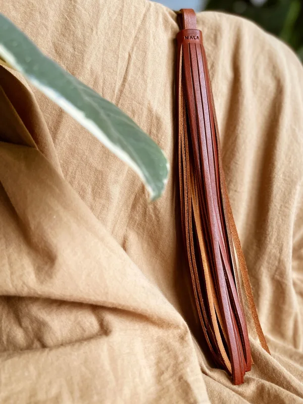 Breloczek „Chwost” długi, kolekcja "Szczyrk", kolor kasztanowy brąz, skóra naturalna Drobne detale mają moc tworzenia dużych zmian. Takim magicznym dodatkiem jest breloczek w stylu chwost. To subtelne i piękne urozmaicenie Twoich ulubionych produktów. Możesz łatwo zmieniać swój styl, dodając ten elegancki akcent do torebki, nerki, kluczy czy innych akcesoriów, korzystając z możliwości dopinania go za pomocą karabińczyka. Pozwól sobie na zmienność - odmieniaj ulubione produkty, dzięki małym akcesoriom. Opis produktu: Wymiary: długość breloczka 22,5 cm, długość breloczka + karabińczyk 28,5 cm Mocowanie: karabińczyk Materiał: skóra naturalna garbowana roślinnie Grubość skóry: 1,8 mm Kolor : kasztanowy brąz Szew: brak Okucia: napy, kolor stare złoto Pielęgnacja i czyszczenie: Wszelkie informacje znajdziesz w zakładce "pielęgnacja i czyszczenie" -> KLIK