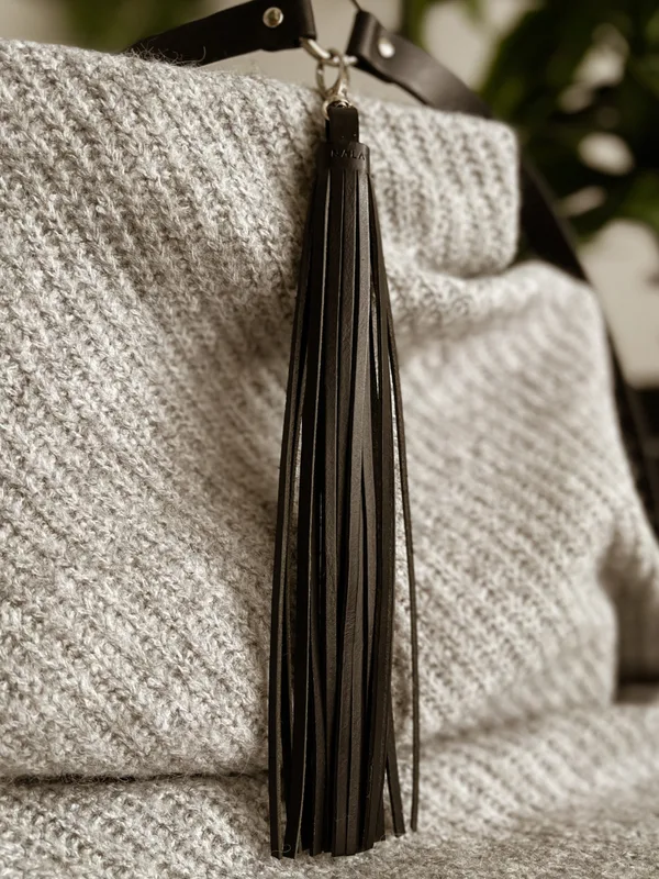 Breloczek "Chwost" długi, kolekcja "Katowice", kolor czarny, skóra naturalna