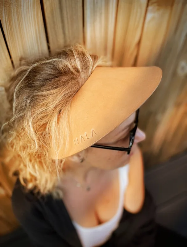 Daszek przeciwsłoneczny duży, kolekcja „Łeba”, kolor piaskowy, skóra naturalna