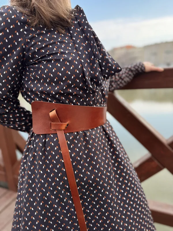 Pasek asymetryczny przekładany, kolekcja „Szczyrk", skóra naturalna, kolor kasztanowy brąz Ten asymetryczny pasek to stylowy dodatek, który podkreśla kobiecą figurę, nadając jednocześnie każdej stylizacji niepowatrzanlego charakteru. Doskonale sprawdzi się zarówno do sukienki, koszuli, bluzki, a nawet grubszego swetra czy płaszcza. Obwód paska regulowany jest przez fantazyjne przeplatanie, które nadaje mu niepowtarzalnego uroku, jednocześnie sprawiając, że pasuje na każdą sylwetkę. To nie tylko funkcjonalny element garderoby, ale również wyrafinowany detal, który dodaje smaku każdej kreacji. Opis produktu: Wymiary: rozmiar uniwersalny System regulacji: przeplatanie Materiał: skóra naturalna garbowana roślinnie Grubość skóry: 1,4 mm Kolor: kasztanowy brąz Okucia: brak Pielęgnacja i czyszczenie: Wszelkie informacje znajdziesz w zakładce "pielęgnacja i czyszczenie" -> KLIK