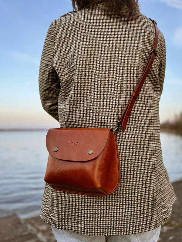 Listonoszka / torebka / nerka, kolekcja „Szczyrk", kolor kasztanowy, skóra naturalna Najbardziej klasyczna kobieca torebka. Nieduża, ale pojemna i bardzo praktyczna. Ponadczasowa linia i surowe wykończenie najdą jej uroku, który idealnie uzupełnia zarówno romantyczny styl vintage jak i nowoczesny miejski look. Bądź królową swojego stylu, noś jak lubisz, zapiętą na biodrach, przewieszoną w stylu crossbody bag lub klasycznie na ramieniu. Efekt przyciągania uwagi - gwarantowany! Opis produktu: Zestaw zawiera: torebkę listonoszkę, długi modułowy, regulowany pasek na ramię i biodra Wymiary torebki: długość 25 cm x wysokość 20 cm x głębokość 5 cm Pasek modułowy: maksymalna długość około 120 cm minimalna długość około 60 cm szczegółowy opis paska oraz sposoby noszenia i zapinania znajdziesz klikając w link -> KLIK System mocowania: szlufki na pasek, półkola do wpięcia karabińczyków Materiał: skóra naturalna garbowana roślinnie Grubość skóry: 1,8 mm Kolor: kasztanowy brąz Szew: lniana nić, kolor czarny Okucia: napy, nity kolor stare złoto Wnętrze torebki: wykończona mizdra, brak podszewki, brak dodatkowych kieszeni Pielęgnacja i czyszczenie: Wszelkie informacje znajdziesz w zakładce "pielęgnacja i czyszczenie" -> KLIK