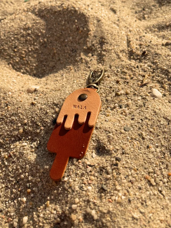 Breloczek „Lody na patyku" Najmniejsze dodatki nadają niepowtarzalnego charakteru każdej stylizacji. Ciesz się nimi i zaskakuj zmieniając swoje ulubione produkty, poprzez dopinanie akcesoriów NALA Opis produktu: Wymiary: długość 7 cm szerokość 2,7 cm Mocowanie: karabińczyk Materiał: skóra naturalna garbowana roślinnie Grubość skóry: 1,8 mm Kolor : kasztanowy brąz, naturalny piaskowy Szew: brak Okucia: napy, kolor stare złoto Pielęgnacja i czyszczenie: Wszelkie informacje znajdziesz w zakładce "pielęgnacja i czyszczenie" -> KLIK