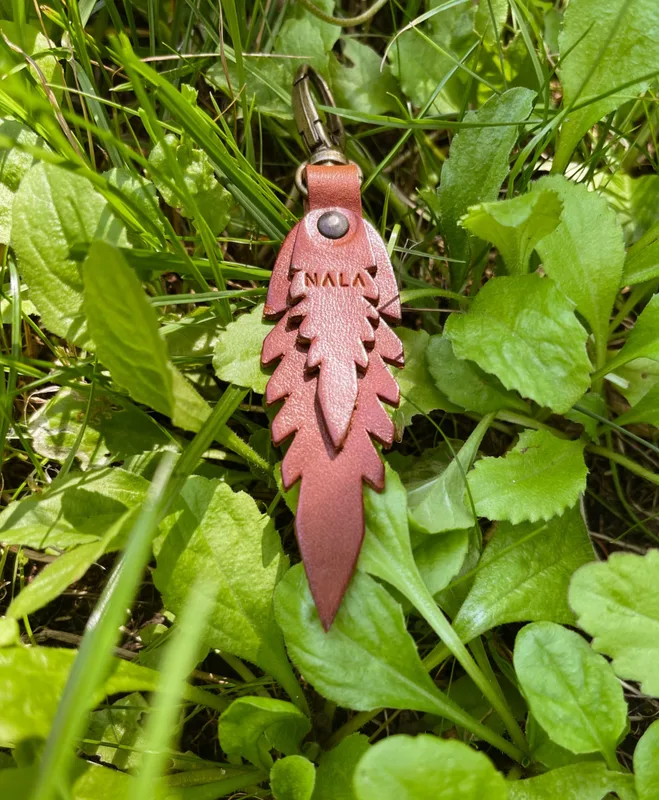 Breloczek „Listki", kolekcja "Szczyrk", kolor kasztanowy brąz, skóra naturalna Najmniejsze dodatki nadają niepowtarzalnego charakteru każdej stylizacji. Ciesz się nimi i zaskakuj zmieniając swoje ulubione produkty, poprzez dopinanie akcesoriów NALA Opis produktu: Wymiary: długość 7 cm szerokość 2,7 cm Mocowanie: karabińczyk Materiał: skóra naturalna garbowana roślinnie Grubość skóry: 1,8 mm Kolor : kasztanowy brąz Szew: brak Okucia: napy, kolor stare złoto Pielęgnacja i czyszczenie: Wszelkie informacje znajdziesz w zakładce "pielęgnacja i czyszczenie" -> KLIK