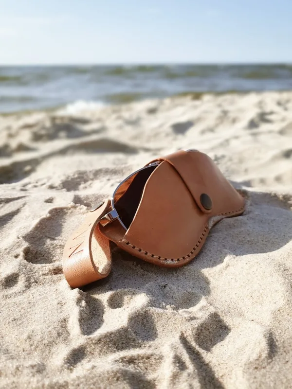 Pokrowiec na okulray, kolekcja "Łeba", kolor piaskowy, skóra naturalna