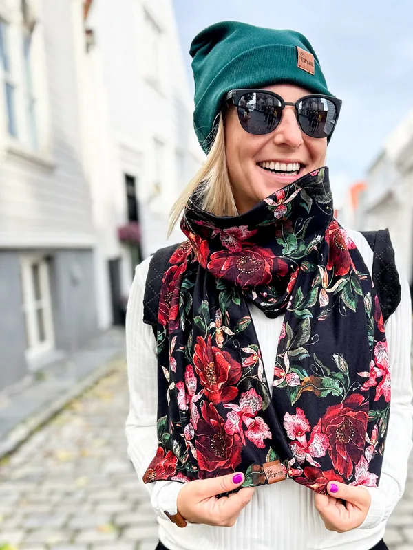 Nowoczesny szalik uszyty z naszych przepięknych wzorów! Długi i dwuwarstwowy. Z jednej strony wzór, z drugiej kolor jednolity (możesz wybrać). Wiele wzorów do wyboru! Co na głowę do takiego szalika? Opaska? Czapka prążkowana? Turban? Ty wybierasz! Wymiary szalika: 30cm x 150cm Na zdjęciach wzór: haftowane róże. Szalik szyjemy dla Ciebie, ale nie jest personalizowany – możesz dokonać zwrotu.