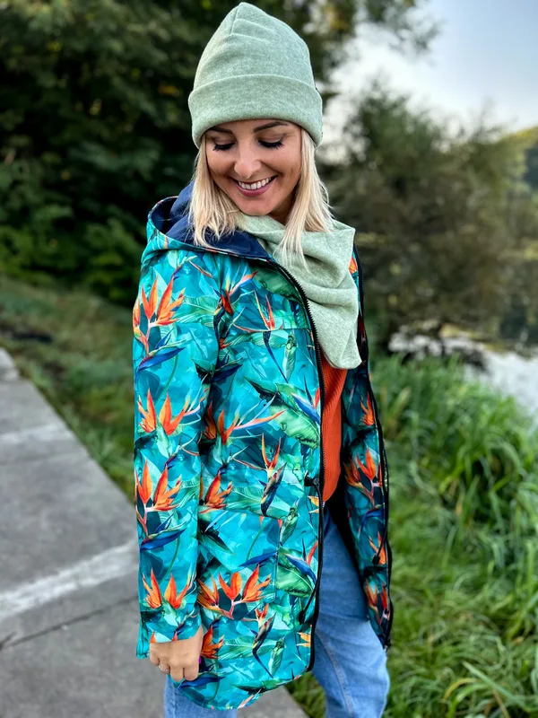 Wzorzysta kurtka damska parka – strelicje turkus Wzorzysta kurtka damska typu parka strelicje turkus to propozycja dla kobiet, które chcą wyróżnić się z jesiennej szarości i wprowadzić do swojej garderoby więcej koloru. To lekko ocieplana kurtka idealna na chłodniejsze dni, łącząca praktyczny krój parki z unikalnym, energetycznym wzorem. Dzięki temu staje się nie tylko funkcjonalnym elementem garderoby, ale również modnym akcentem codziennych stylizacji. Funkcjonalny krój z dbałością o detale Ta damska kurtka parka została zaprojektowana z myślą o wygodzie i kobiecej sylwetce. Posiada klasyczny, główkowy rękaw, obszerny kaptur chroniący przed wiatrem oraz ozdobne zakładki z przodu i z tyłu, które dodają jej charakteru. Z przodu umieszczono dwie praktyczne kieszenie nakładane z imitacją patki, idealne na drobiazgi. Dwusuwakowy zamek ułatwia codzienne noszenie, a tunel w pasie z gumowym sznurkiem pozwala dopasować kurtkę do talii i podkreślić figurę. Materiały wysokiej jakości Zewnętrzna warstwa kurtki została wykonana z tkaniny wodoodpornej w 100% poliestrowej, powleczonej poliuretanem. Materiał jest odporny na wilgoć i trudne warunki atmosferyczne, a jednocześnie spełnia normy bezpieczeństwa i nie zawiera metali ciężkich. Wnętrze ocieplono miękkim Velvetem – tkaniną z krótkim włosem, przyjemną w dotyku, o strukturze przypominającej cegiełki. Dzięki temu kurtka zapewnia komfort cieplny, jednocześnie pozostając lekką i wygodną. Styl i unikalność na co dzień Kurtka damska parka we wzory doskonale sprawdzi się w wielu stylizacjach – pasuje zarówno do jeansów i sneakersów, jak i do sukienki czy spódnicy. Wzór strelicje turkus dodaje energii i pozwala wyróżnić się z tłumu, podkreślając indywidualny styl. To wybór dla kobiet, które cenią wygodę, ale nie chcą rezygnować z modnego wyglądu. Na zdjęciach rozmiar S Inne wzory tej kurtki znajdziesz tu: https://nopewnie.com.pl/?s=parka&post_type=product
