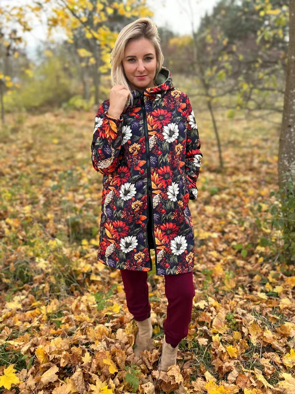 Zimowa kurtka damska typu płaszczyk, ocieplana. Wyróżnij się zimą! Czas na wzorzysty płaszczyk jesienne kwiaty! Płaszcz damski o kroju litery A: – w tyle karczek oraz panel, poszerzający płaszcz na linii talii oraz na linii bioder – linia dekoltu wykończona kapturem ze stójką – rękaw klasyczny, główkowy – dwie głębokie kieszenie – kurtka zapinana na zamek Wzory możesz wybierać wg swojego gustu. Mamy przeróżne – kwiatowe, abstrakcyjne, zwierzęce motywy. Postaw na unikalność. Z czego uszyjemy Twoją kurtkę? Na zewnątrz Softshell – to materiał poliestrowy. Liczne zalety, takie jak: wodoodporność, wysoka elastyczność, trwałość. Wysoka gramatura oraz lewa strona z delikatnym meszkiem sprawia, że ochroni nas on nie tylko przed deszczem czy śniegiem ale również wiatrem. Jest to materiał odporny na przetarcia. W środku polar – mięciutki i przyjemny, o wysokiej gramaturze. Jeśli w zamówieniu nie podasz swojego wzrostu – uszyjemy długości standardowe. Wymiary gotowej kurtki: rozmiar długość szwu naramiennego/ szerokość pod pachami / szerokość przodu na dole (tył poszerzony o wstawkę) XXS 9,5cm / 54cm / 58cm XS 10cm / 56cm / 60cm S 10,5cm / 58cm / 62cm M 11cm / 60cm / 64cm L 11,5cm / 62cm / 66cm XL 12cm / 64cm / 68cm XXL 12,5cm / 66cm / 70cm