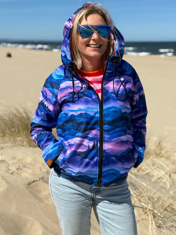 Wiosenna, wodoodporna kurtka! Oto kurtka, która od razu wprawia w dobry nastrój! Wyobraź sobie, że wychodzisz w góry i widoki zniewalają. Ta kurtka to prawdziwy hit – jej piękny, kolorowy wzór od razu przyciąga wzrok, a instensywne kolory sprawiają, że od razu chce się ją nosić! Chcesz inny, bardziej delikatny wzór? No Pewnie! Mamy ich do wyboru bardzo dużo. Ta kurtka to prawdziwy must-have na zmienne warunki pogodowe! Dzięki zastosowanym materiałom, jest **wodoodporna**, co oznacza, że możesz śmiało wychodzić na deszczowe dni bez obaw o zmoknięcie. Krople wody spływają po powierzchni, więc nawet intensywny deszcz nie zaskoczy Cię podczas spacerów czy wycieczek. Ale to nie wszystko! Kurtka została zaprojektowana z myślą o skutecznej ochronie przed wiatrem. Jej **przeciwwietrzna konstrukcja** sprawia, że nawet na wietrznych dni gustownie ubrana będziesz czuć się komfortowo. Kaptur idealnie chroni głowę. Kurtka damska wykonana z tkaniny wodoodpornej na welurowej podszewce. Zapinana na zamek, stójka z kapturem, gumki przy szyi do ściągania dwie, głębokie kieszenie z tyłu ozdobna zakładka. Na zewnątrz: tkanina kurtkowa, jednostronne powleczenie materiału poliuretanem sprawia, że jest on wodoodporny. Materiał nie zawierają szkodliwych pierwiastków i zawartości metali ciężkich (Zgodnie z normą: PN-EN 71-3: 1998). W środku: podszewka welurowa. Modelka na zdjęciu ma wzór fioletowe góry rozmiar M, bez dopasowania do wzrostu. Wymiary gotowej kurtki. Rozmiar – długość rękawa w standardzie (mierzona od szyi) – szerokość kurtki – długość kurtki w standardzie XS – 69cm – 48cm – 60cm S – 69cm – 50cm – 60cm M – 69cm – 52cm – 60cm L – 69cm – 54cm – 60cm XL – 69cm – 56cm – 60cm XXL – 69cm – 58cm – 60cm