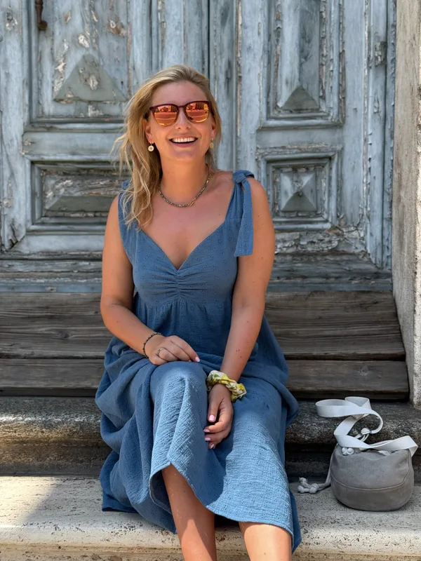 Sukienka Roma – muślinowa maxi Poznaj sukienkę Roma – lekką, kobiecą i szytą na zamówienie z naturalnego muślinu bawełnianego. Inspirowana klimatem włoskich uliczek, powstała z myślą o wygodzie, swobodzie i ponadczasowej elegancji. Idealna na lato, wakacje czy miejskie spacery – zarówno w Rzymie, jak i w Twoim codziennym świecie. Szyta na zamówienie Każda sukienka powstaje indywidualnie – masz możliwość wyboru długości, koloru. Głębokość dekoltu zmieniasz sama dzięki regulowanym ramiączkom wiązanym na kokardy. Materiał: muślin bawełniany 100% naturalna, oddychająca bawełna Delikatny, subtelny haft jest dostępny w kolorze śmietankowym oraz zgaszony niebieski (na foto) Miękki i przewiewny materiał – idealny na ciepłe dni Kolory do wyboru: Zgaszony niebieski (na zdjęciu) śmietankowy, karmel, oliwka, czerwony, brudny róż, grafit i inne – pełna paleta do wyboru w zakładce: kolory do wyboru! Krój: Długość maxi z opcją skrócenia lub wydłużenia Marszczony dekolt w kształcie serca z regulacją głębokości. W dekolcie podwójny materiał tworzący pewnego rodzaju biustonosz Luźny, rozkloszowany dół z falbaną. Wiązane ramiączka – pełna kontrola nad dopasowaniem. Szczegóły: Brak podszewki – muślin zapewnia komfort i przewiewność Subtelna faktura i naturalne wykończenia Każda sukienka jest unikalna – szyta na Twoje zamówienie Sukienka Roma to wyjątkowy element garderoby w duchu slow fashion. Wybierz kolor i długość – a my uszyjemy ją specjalnie dla Ciebie! Dostępna w rozmiarach XS–XL (lub szyta na wymiar) Czas realizacji: do 14 dni roboczych Darmowa dostawa od 400 zł