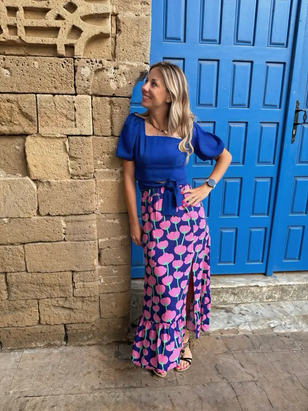 To lekka, długa spódnica z rozporkiem, na prawej nodze. Ozdobiona na dole delikatną falbaną. Pasuje do codziennych i wieczorowych stylizacji. Dobierz do niej Top Sylvia Kobaltowa Energia Spódnica ma gumę w pasie. Materiał z którego szyjemy to lekka wiskoza w pięknym wzorze. Absolutnie nie prześwituje. Inne wzory tutaj: Długa spódnica Ryga Szyjemy ją w każdej długości i w każdym rozmiarze. Zamawiając wybierz rozmiar, możesz zmienić długość. Długość standard to 94cm Modelka na zdjęciach ma spódnicę o długości 94cm. Wiskozę pierz tylko ręcznie w niskiej temperaturze.