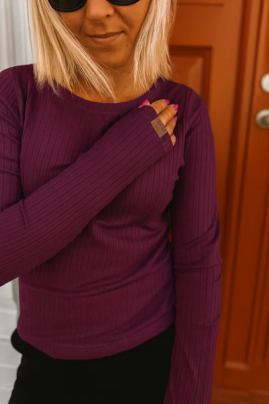 Bluzka z długim rękawem bawełniany prążek