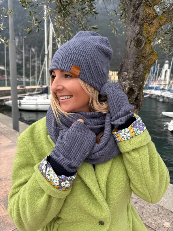 Zestaw zimowy: czapka, komin i mitenki Stylowy, ciepły i miękki zestaw wykonany z przyjemnej w dotyku dzianiny o naturalnym składzie. Wybierz idealną kombinację dopasowaną do Twoich potrzeb — wszystkie elementy możesz zakupić razem lub osobno . Na zdjęciach kolor: zgaszony niebieski. W skład zestawu wchodzą: 🧢 Czapka Klasyczna, elastyczna czapka o ponadczasowym kroju. Idealnie dopasowuje się do kształtu głowy, chroniąc przed chłodem i wiatrem. Dzięki miękkiej przędzy czapka nie uciska i nie elektryzuje włosów. Cechy: elastyczna i lekka, idealna na sezon jesienno-zimowy, nie gryzie i nie powoduje uczucia dyskomfortu. 🧣 Komin Dwie wersje do wyboru: Komin pojedynczy – zakładany przez głowę jednym ruchem, z innowacyjnym wyglądem chusty (na zdjęciu gdzie modelka ma na sobie szarą sukienkę swetrową). Komin podwójny – dłuższy, do owinięcia dwa razy wokół szyi, zapewnia dodatkowe ciepło w chłodniejsze dni (na zdjęciach z zieloną marynarką) Oba warianty doskonale komponują się z czapką, tworząc spójny i stylowy zestaw. 🧤 Mitenki Stylowe rękawiczki bez palców, które zapewniają ciepło i swobodę ruchów. Idealne do codziennego noszenia – podczas spaceru, prowadzenia samochodu czy pracy na zewnątrz. Cechy: chronią dłonie, nie ograniczając zręczności, dopasowują się do dłoni, doskonałe do stylizacji miejskich i casualowych. Materiał i skład Skład Proporcje Wiskoza 50% Tencel 25% Nylon 25% Dlaczego ten skład jest wyjątkowy: Wiskoza – miękka, oddychająca, o jedwabistym dotyku. Tencel – włókno pochodzenia naturalnego, przyjazne dla skóry i środowiska, odporne na mechacenie. Nylon – dodaje elastyczności i trwałości, dzięki czemu dzianina zachowuje kształt nawet po wielu praniach. Kolory do wyboru Zestaw dostępny jest w kilku uniwersalnych odcieniach, idealnych do zimowych stylizacji. miodowa musztarda chabrowy beż granat zgaszony niebieski śliwka cappucino czerwony bordowy butelkowa zieleń malaga szmaragdowy fiolet zielony czekoladowy brąz fuksja oliwkowy szary melanż ecru czarny Sposób pielęgnacji Prać ręcznie lub w pralce w temperaturze do 30°C . Nie wybielać. Suszyć na płasko. Nie prasować w wysokiej temperaturze. Kupuj tak, jak lubisz Czapka, komin i mitenki dostępne osobno lub jako kompletny zestaw . Możesz dobrać różne kolory i warianty komina. Dla kogo Idealny wybór dla osób ceniących: wygodę i miękkość, naturalne materiały, minimalistyczny, elegancki styl, możliwość personalizacji zestawu.