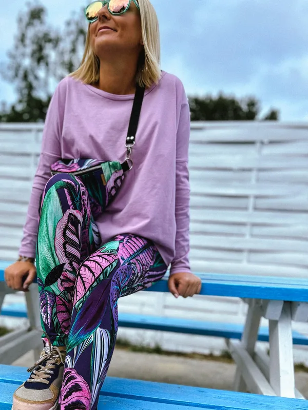 Legginsy wzorzyste damskie – wygoda i elastyczność na każdy dzień Komfort na najwyższym poziomie Legginsy wzorzyste damskie to podstawowy element garderoby dla kobiet ceniących wygodę, swobodę ruchu i estetyczny wygląd. Wykonane z miękkiej, elastycznej dzianiny, doskonale dopasowują się do ciała, podkreślając sylwetkę, a jednocześnie nie krępując ruchów. Materiał jest przyjemny dla skóry, oddychający i odpowiedni do codziennego noszenia o każdej porze roku. Dzięki domieszce elastanu legginsy zachowują swój kształt nawet po wielu praniach. Stylowy minimalizm i praktyczne detale Model charakteryzuje się klasycznym, lekko zwężanym krojem, który sprawdza się w stylizacjach sportowych, casualowych oraz domowych. Średnio- wysoki stan legginsów daje poczucie stabilności i wygody, a jednocześnie optycznie wysmukla talię. Niezbyt szeroka guma w pasie (2,5cm) zapewnia dobre trzymanie oraz komfort przez cały dzień. Prosty, gładki design legginsów sprawia, że można je łatwo łączyć z koszulkami, bluzami, swetrami czy dłuższymi tunikami. Wybór długości i dopasowanie do sylwetki Podczas zamówienia dostępna jest opcja wyboru długości nogawki, co pozwala dopasować legginsy do wzrostu i indywidualnych preferencji. Dzięki temu możesz zdecydować, czy wolisz model sięgający kostki, czy nieco krótszy wariant. Szeroka rozmiarówka umożliwia dobranie legginsów tak, aby idealnie leżały i zapewniały pełną wygodę na co dzień. Długość zależy od wzrostu, a nie od rozmiaru, mierzymy siebie: Xs S M L Xl xxl Guma w pasie 62cm 64cm 68cm 74cm 80cm 86cm biodra 86-90 91-98 96-101 102-109 110-119 120-126 Rozmiarówka standardowa. Uniwersalne zastosowanie Legginsy damskie sprawdzą się w wielu sytuacjach: do codziennych stylizacji z bluzą i sneakersami, na trening, spacer lub aktywności ruchowe, jako element wygodnego stroju domowego, w nowoczesnych stylizacjach z długim swetrem lub lekką kurtką. Ich wszechstronność czyni je jednym z najbardziej praktycznych ubrań w kobiecej szafie. Pielęgnacja i trwałość Aby legginsy długo zachowały pierwotny wygląd, zaleca się pranie w temperaturze do 40°C na delikatnym programie oraz unikanie suszenia w suszarce bębnowej. Taki sposób pielęgnacji pozwala utrzymać elastyczność materiału i intensywność kolorów. Na zdjęciach rozmiar S wzór fioletowe liście Rozmiarówka Wolisz mierzyć ubranie, a nie siebie? Dobierz swój rozmiar na podstawie pomiarów gotowych leggi: Rozmiar Obwód nogawki na wysokości kroku Obwód w udzie Obwód w łydce Guma w pasie XS 47 cm 33 cm 25 cm 62 cm S 52 cm 36 cm 28 cm 64 cm M 56 cm 38 cm 30 cm 68 cm L 61 cm 40 cm 33 cm 74 cm XL 64 cm 43 cm 36 cm 80 cm XXL 66 cm 44 cm 37 cm 86 cm