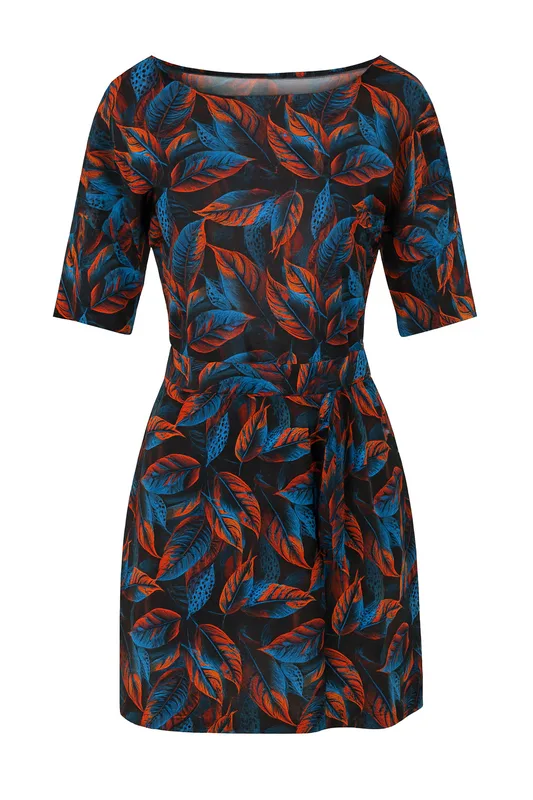Uszyta i gotowa do wysyłki. Model: Sukienka Łódka wzór – No Pewnie Kolor: jak na foto – wzór kakaowiec Rozmiar: XS dł 90cm Materiał – jersey bawełniany 92% bawełna 8% elastan Produkt dostępny od ręki. Wysyłka 1-2dni.