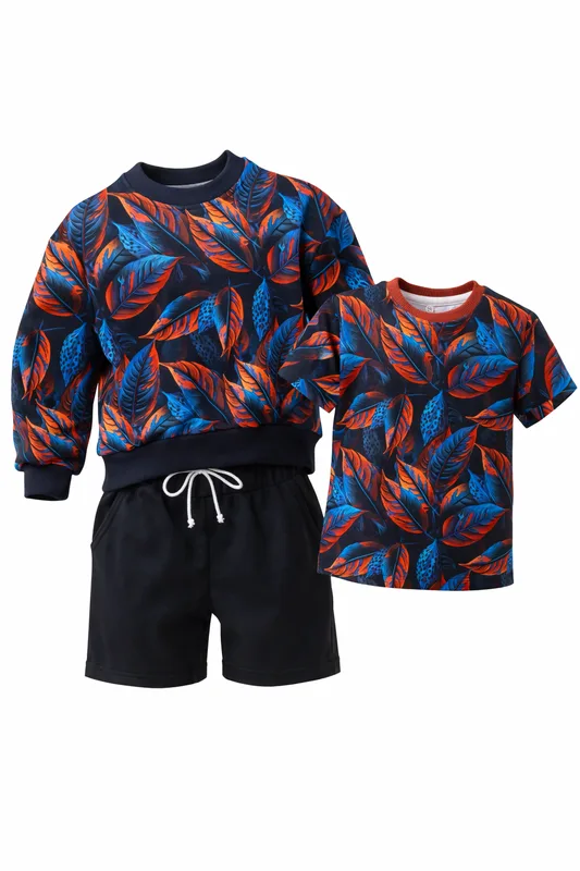 USZYTY I GOTOWY DO WYSYŁKI Dresik: Bluza o kroju oversize kakaowiec T-shirt dziecięcy rozmiar 98 kakaowiec Szorty granatowe Materiał: 95% bawełna 5 % elastan Rozmiar: 98 Wymiary bluzy: szerokość: 32cm długość: 35cm długość rękawa mierzona od szyi: 40cmcm Tył: taki sam jak przód Wymiary t-shirtu: szerokość: 29cm długość: 36cm